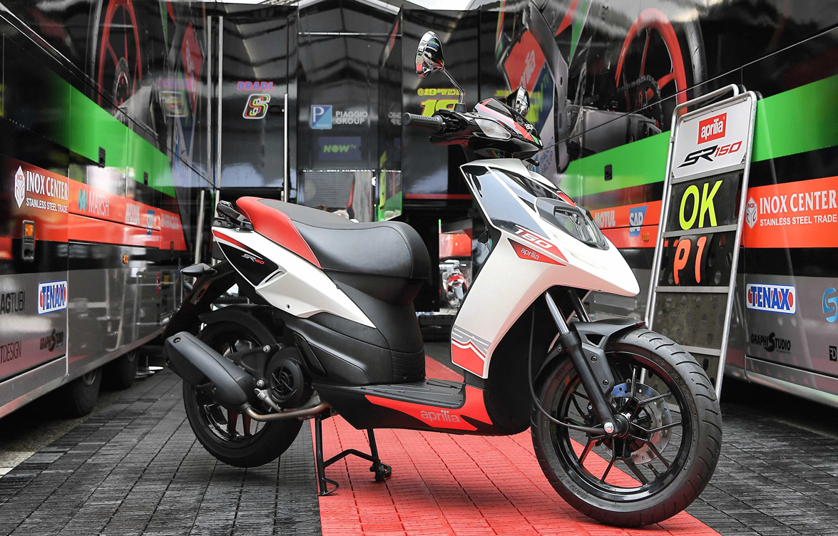 பியஜியோ நிறுவனம் எப்போதுமே செயல்திறன் மிக்க வாகனங்களை தயாரிப்பதில் முன்னோடி, அந்த வரிசையில் தற்போது ஏப்ரிலியா SR150. மேலும் இந்த மாடல் 150சிசி இன்ஜினுடன் வெளிவருகிறது என்பது குறிப்பிடதக்கது. டிசைனை பொருத்தவரை பக்கவான ஸ்போர்ட்ஸ் மாடலாக கூறலாம். முன்புற சிவப்பு மற்றும் கருப்பு வண்ண முகப்பில் ட்வின் ஹெட்லைட்டுகள் மிரட்டலான தோற்றத்தைக் கொடுக்கின்றன. அதே சிவப்பு கருப்பு வண்ண கலவையில் இருக்கையும் சிறிது உயரமான வால் பகுதியும் கொண்டுள்ளது.